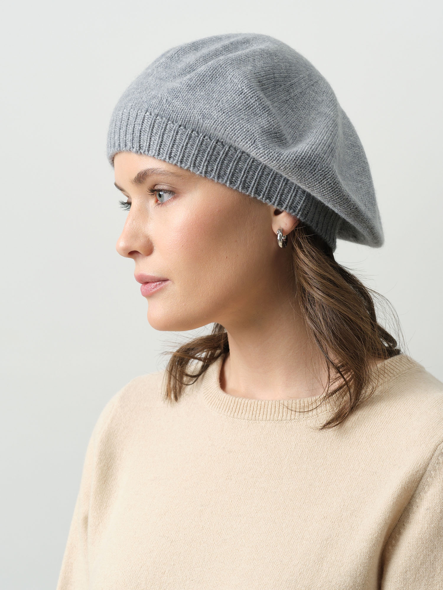 Берет кашемировый 11009b серо-голубой