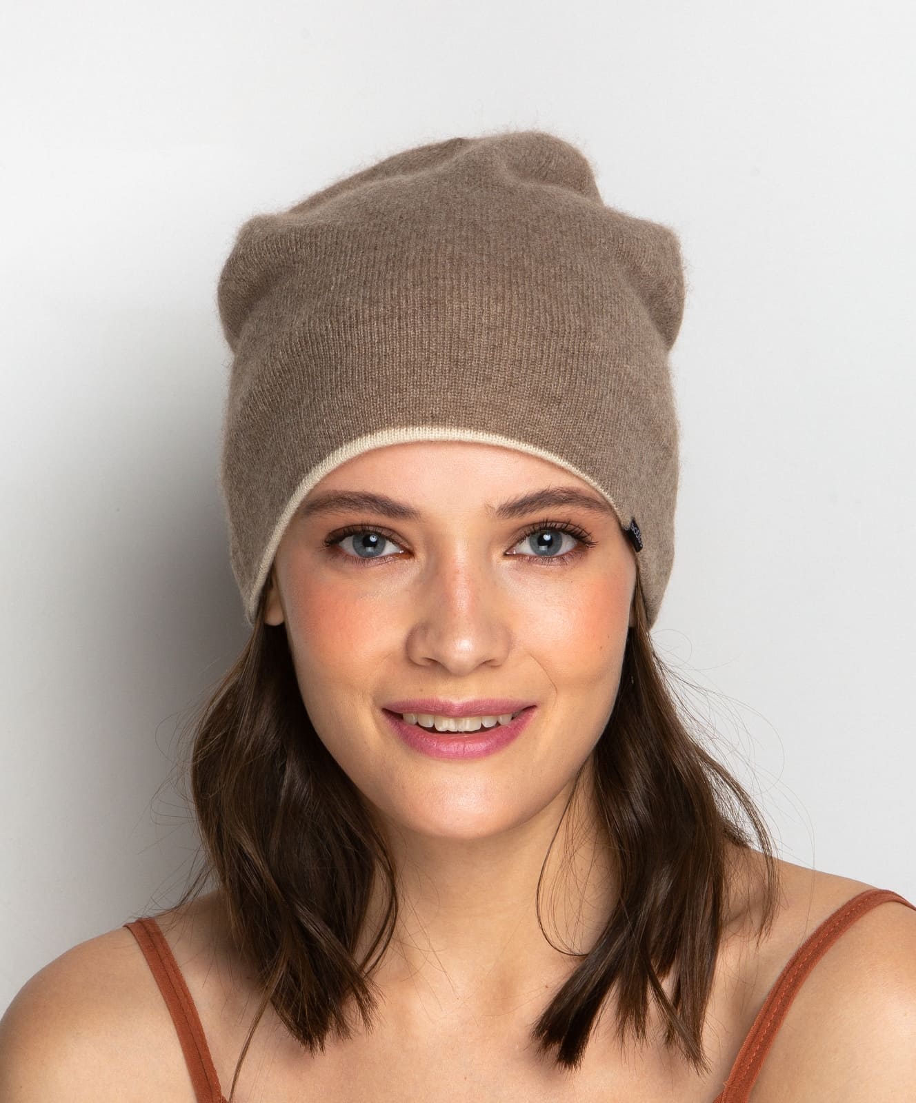 Шапка кашемировая двухсторонняя 11041 капучино/бежевый