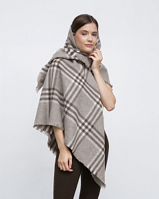 Модель выполнена в форме крупной косынки с эффектным клетчатым узором. Свободная форма позволяет носить платок различными способами — на плечах, вокруг шеи или в виде накидки, создавая разные стилистические решения.