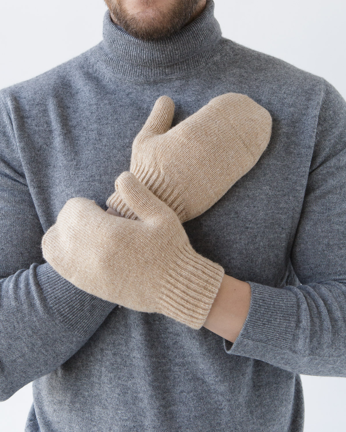 Теплые варежки из монгольской шерсти бежевые