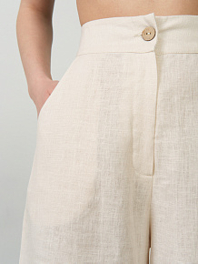 Пояс без шлёвок, застёжка на пуговицу и молнию, боковые карманы, аккуратные швы, лёгкая фактура ткани.